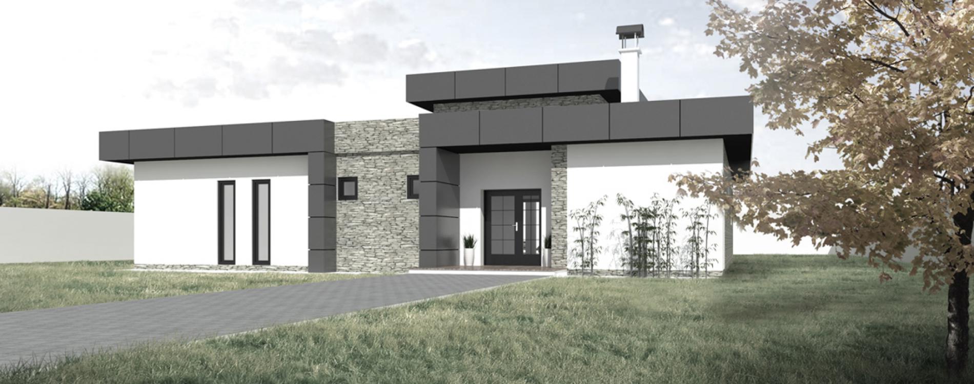 Projekt 4 izbového moderného bungalovu pre 4 5 člennú rodinu s čiastočne zastrešenou terasou