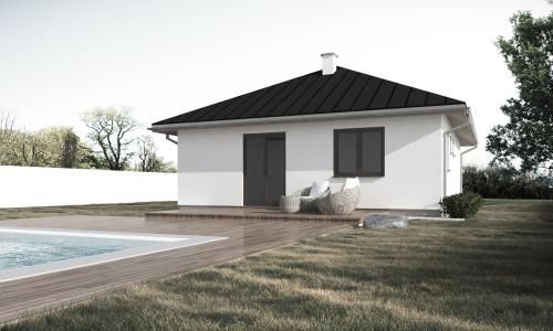Projekt malého 3 izbového bungalovu s krbom, ktorý môže byť štartom pre vaše bývanie v dome.